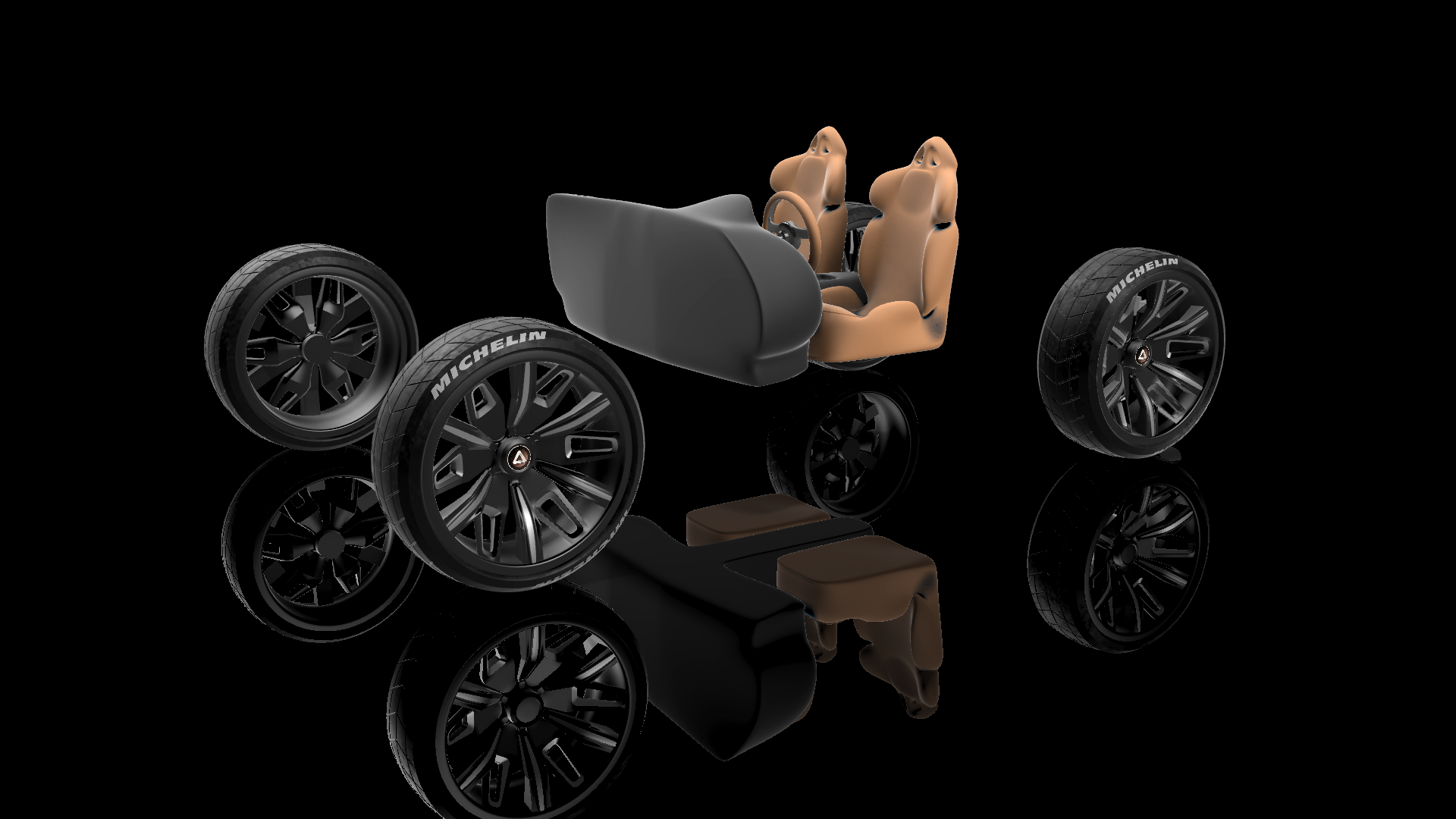 This model is roughly made for the overall concept of a compact car. The main focus here was to develop tire and rims at the beginning and then have a shell as a car.